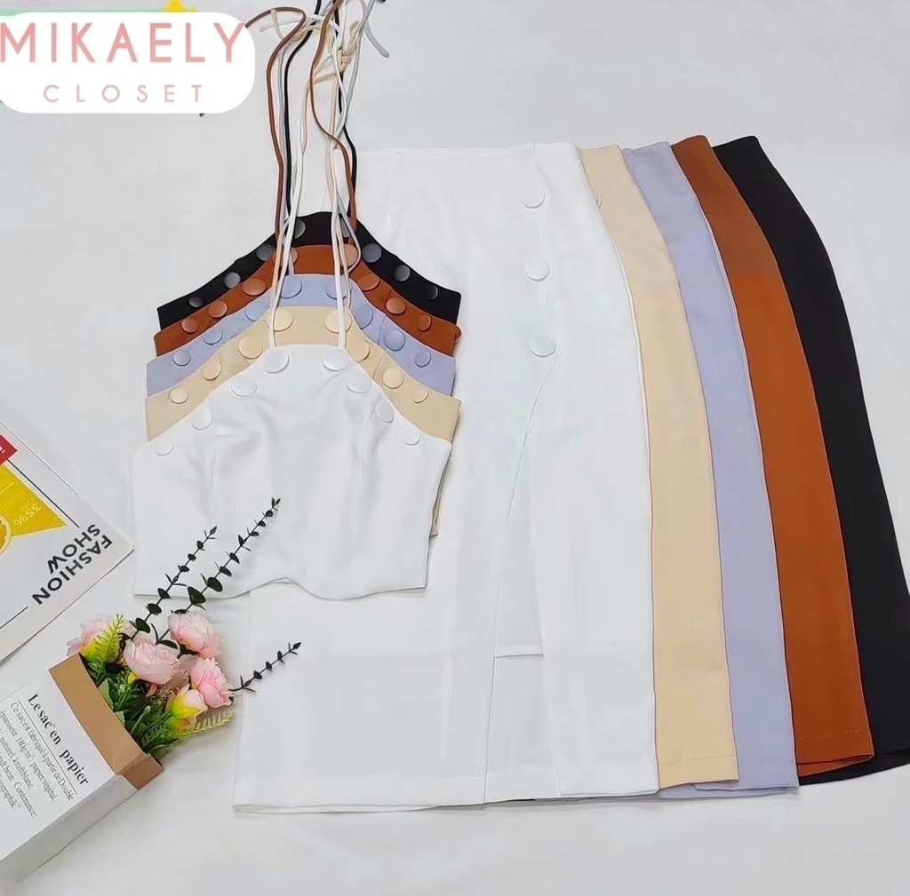 Conjunto Midi, rico em detalhes, botões encapados, todo forrado, sem bojo, extremamente acinturado, com zíper na parte de trás na mesma cor da peça. Possui uma fenda na lateral trazendo uma sensualidade a mais para a peça, sem perder a elegância.